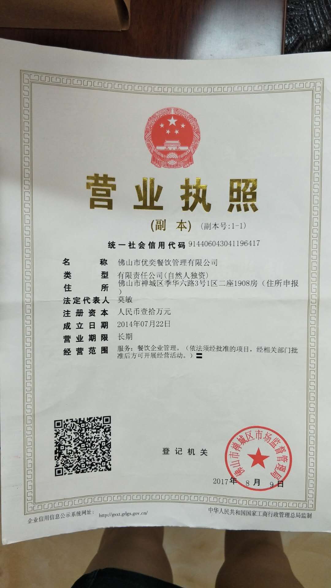 佛山市优奕餐饮管理有限公司