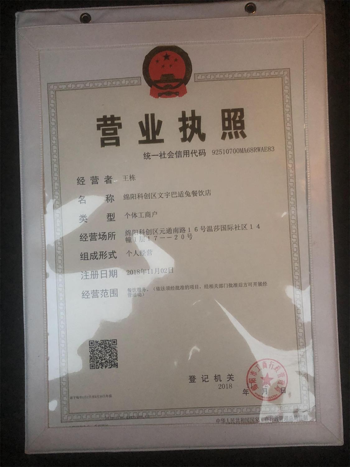 绵阳科创区文宇巴适兔餐饮店