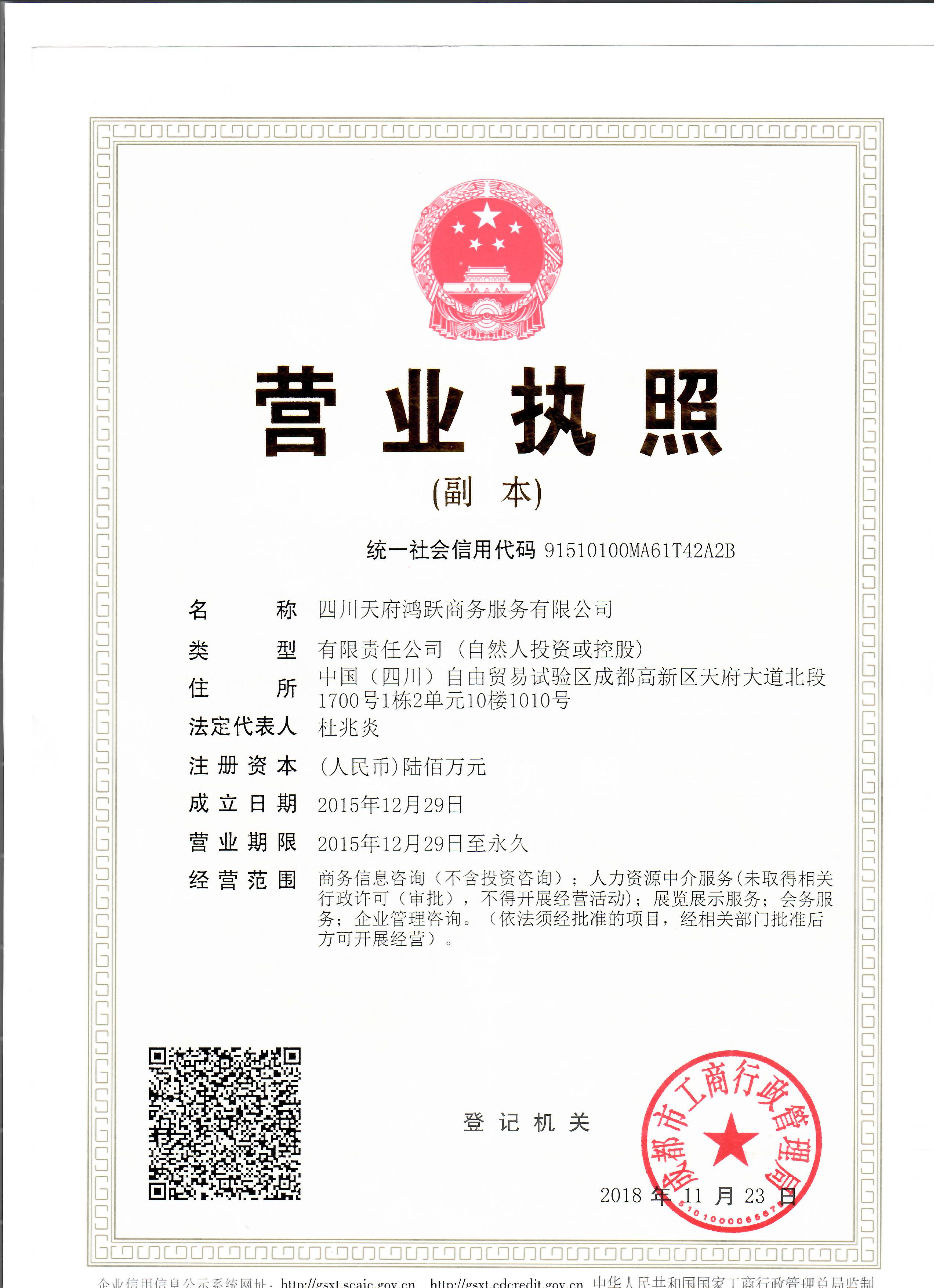 四川天府鸿跃商务服务有限公司