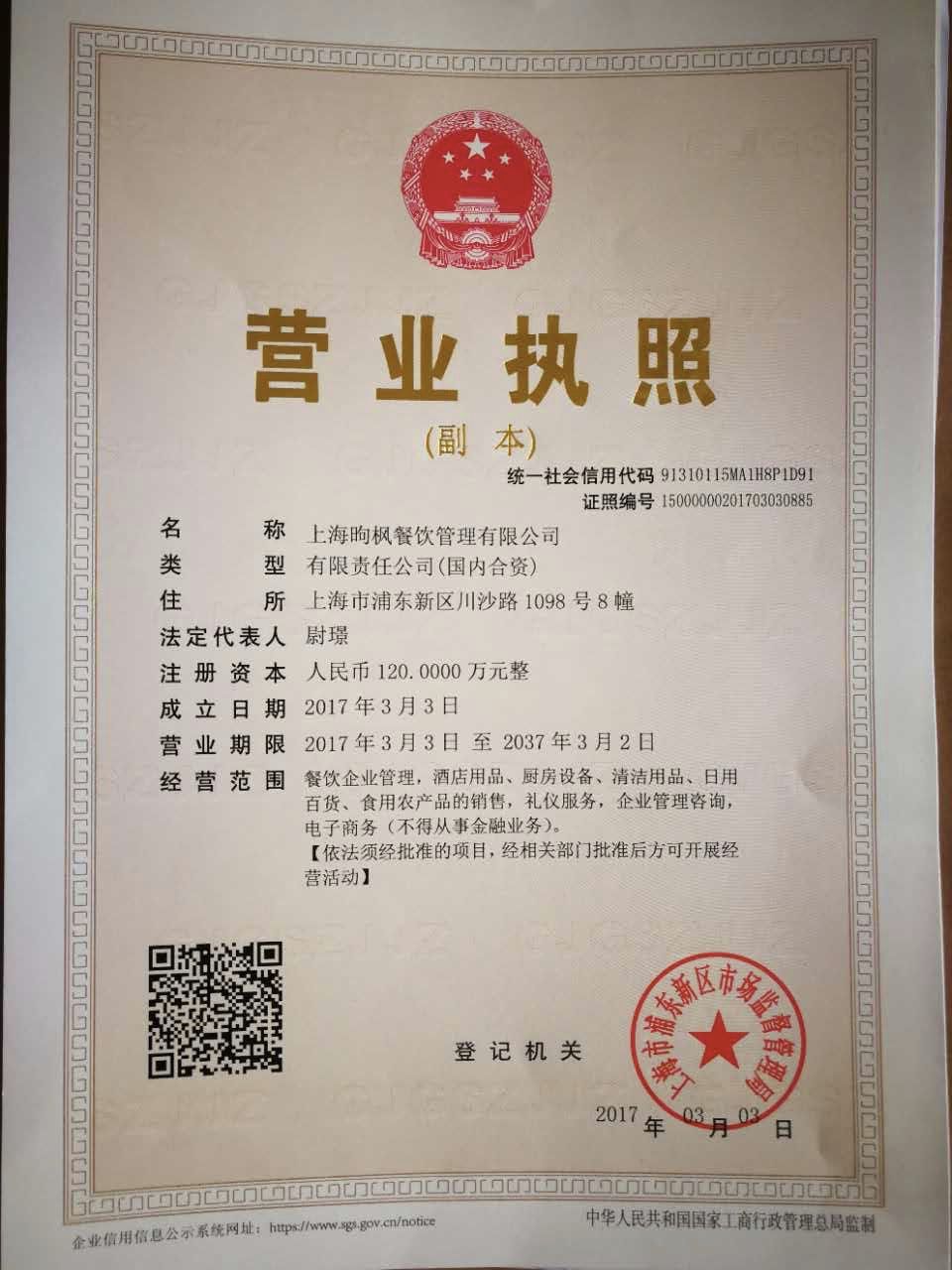 上海昫枫餐饮管理有限公司