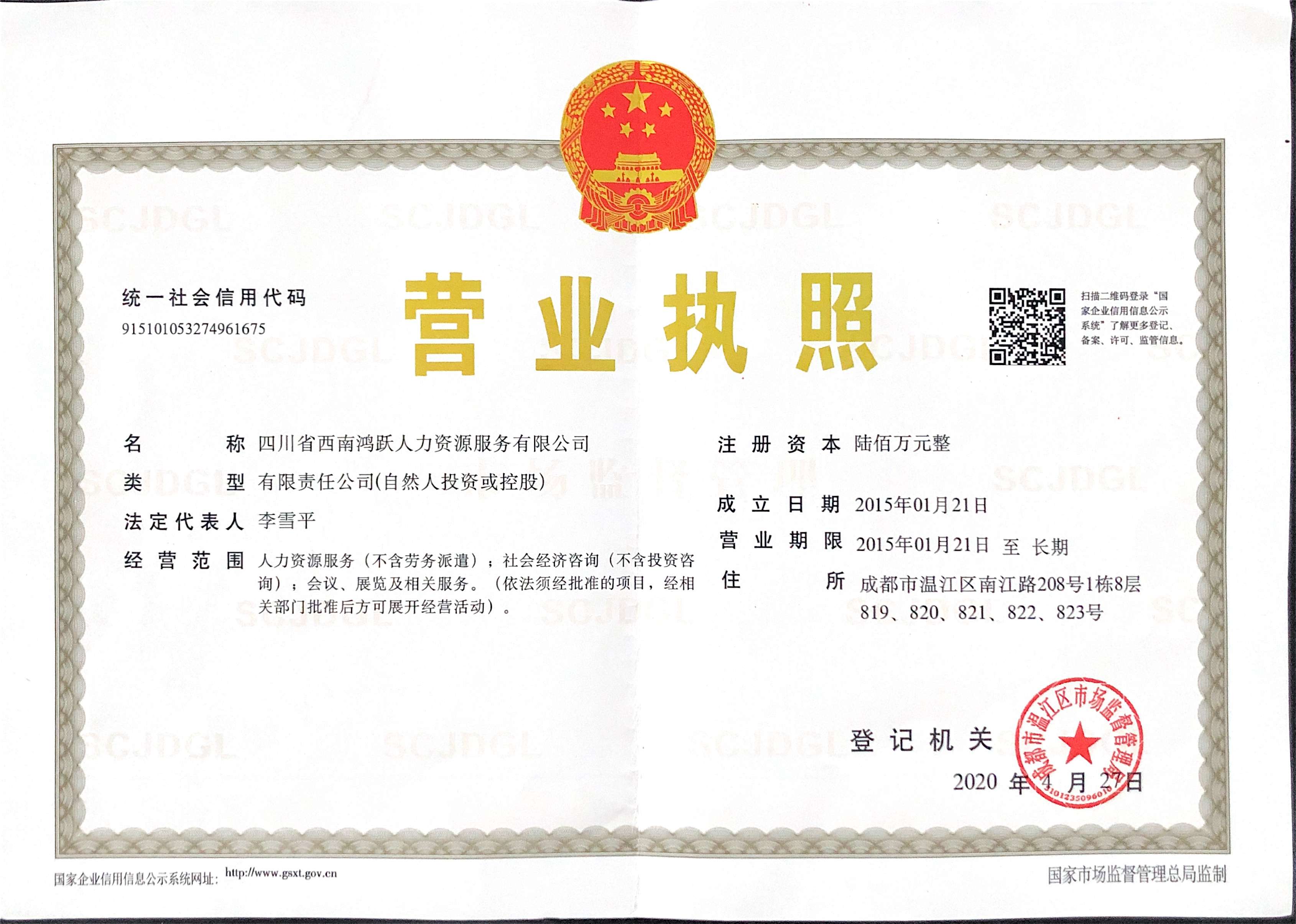 四川省西南鸿跃人力资源服务有限公司