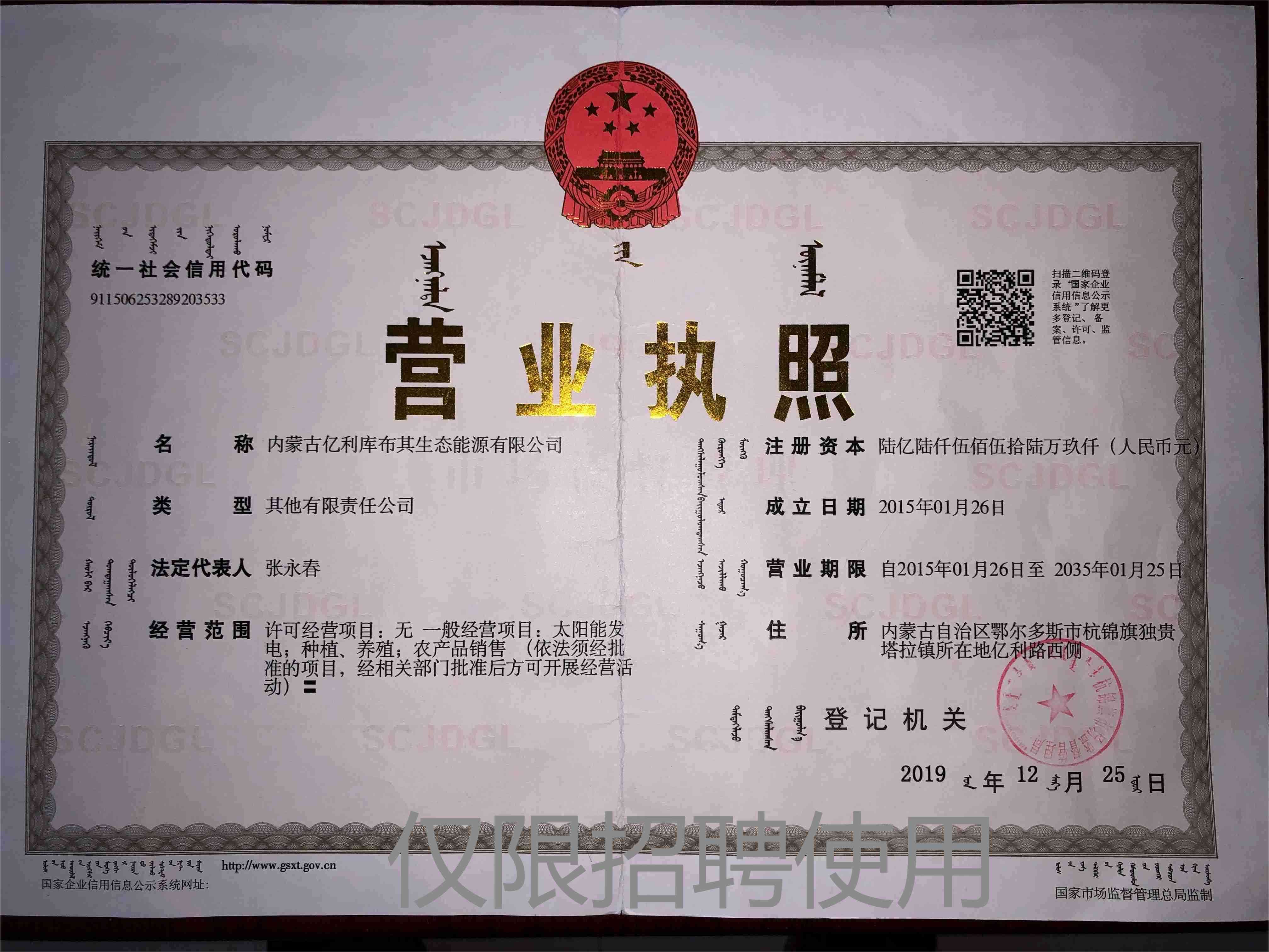 内蒙古亿利库布其生态能源有限公司