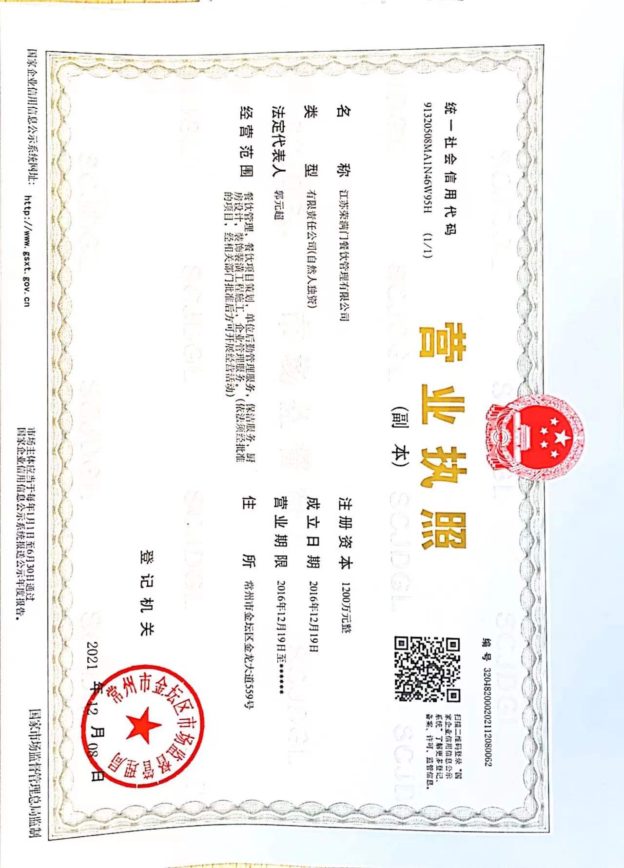 江苏荣满门餐饮管理有限公司