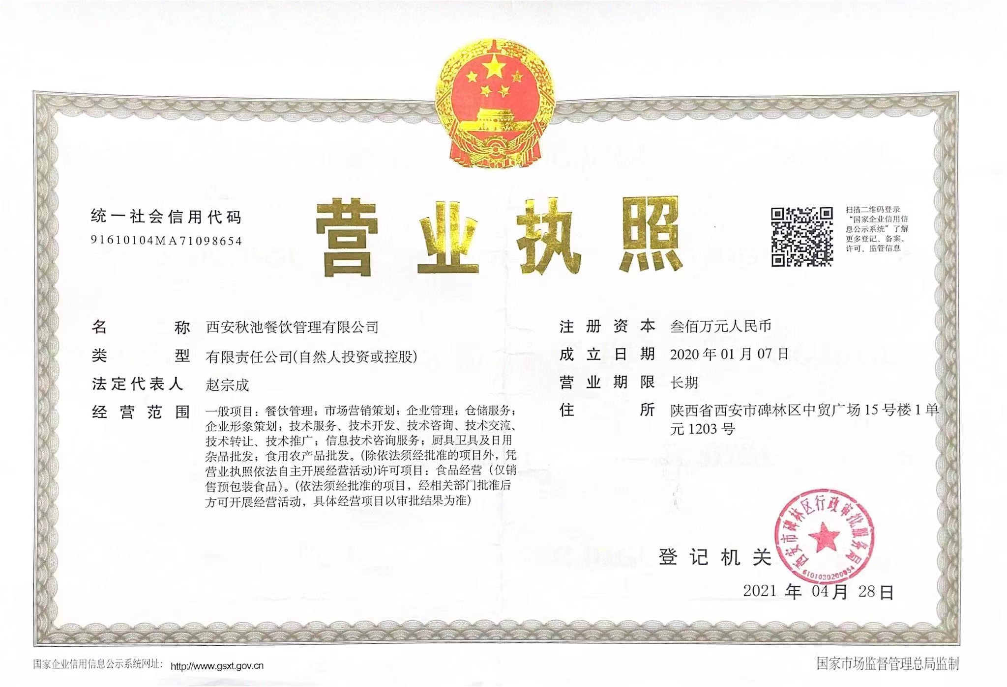 西安秋池餐饮管理有限公司