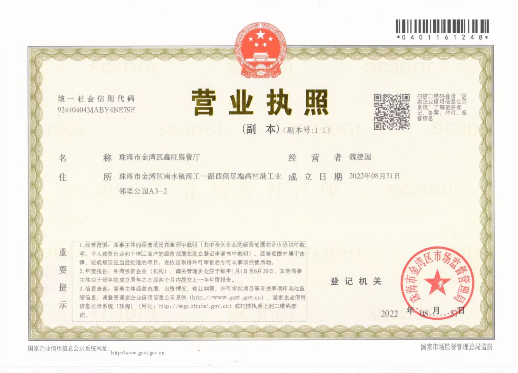 珠海市金湾区鑫旺达餐厅