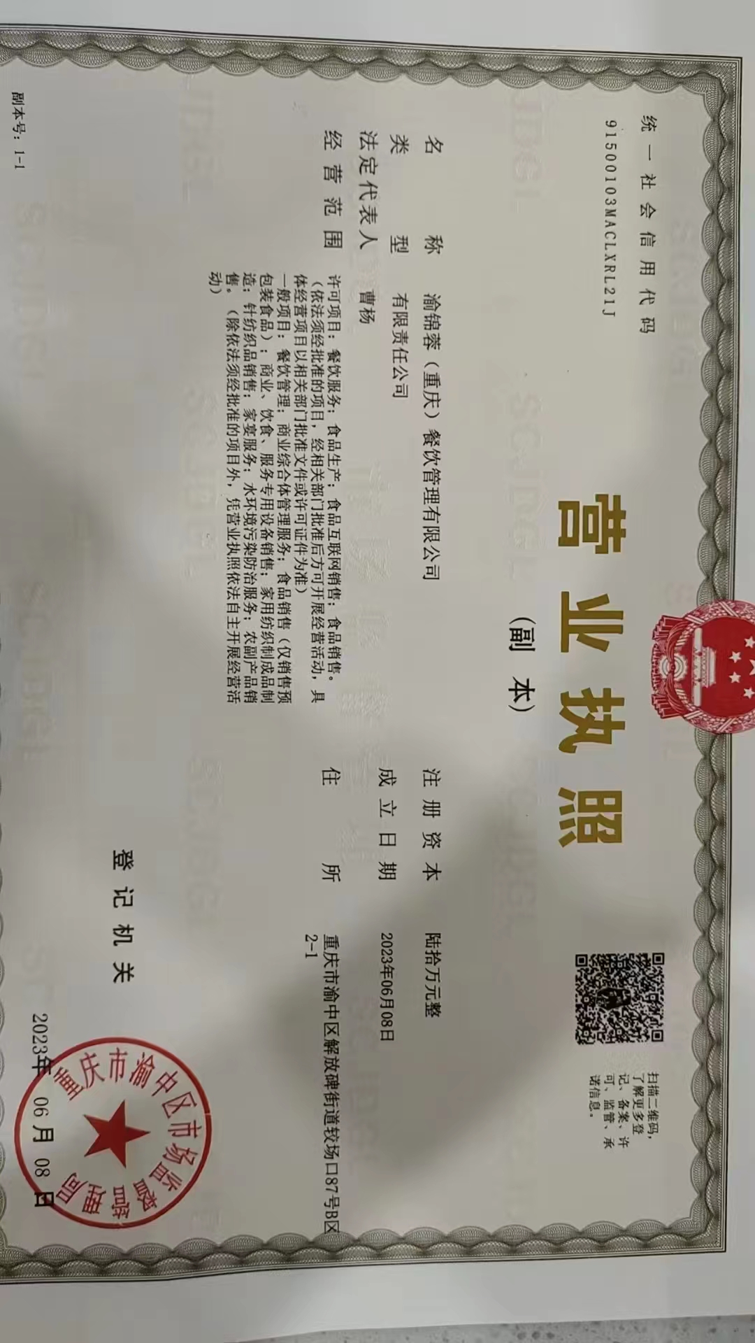 渝锦蓉(重庆)餐饮管理有限公司