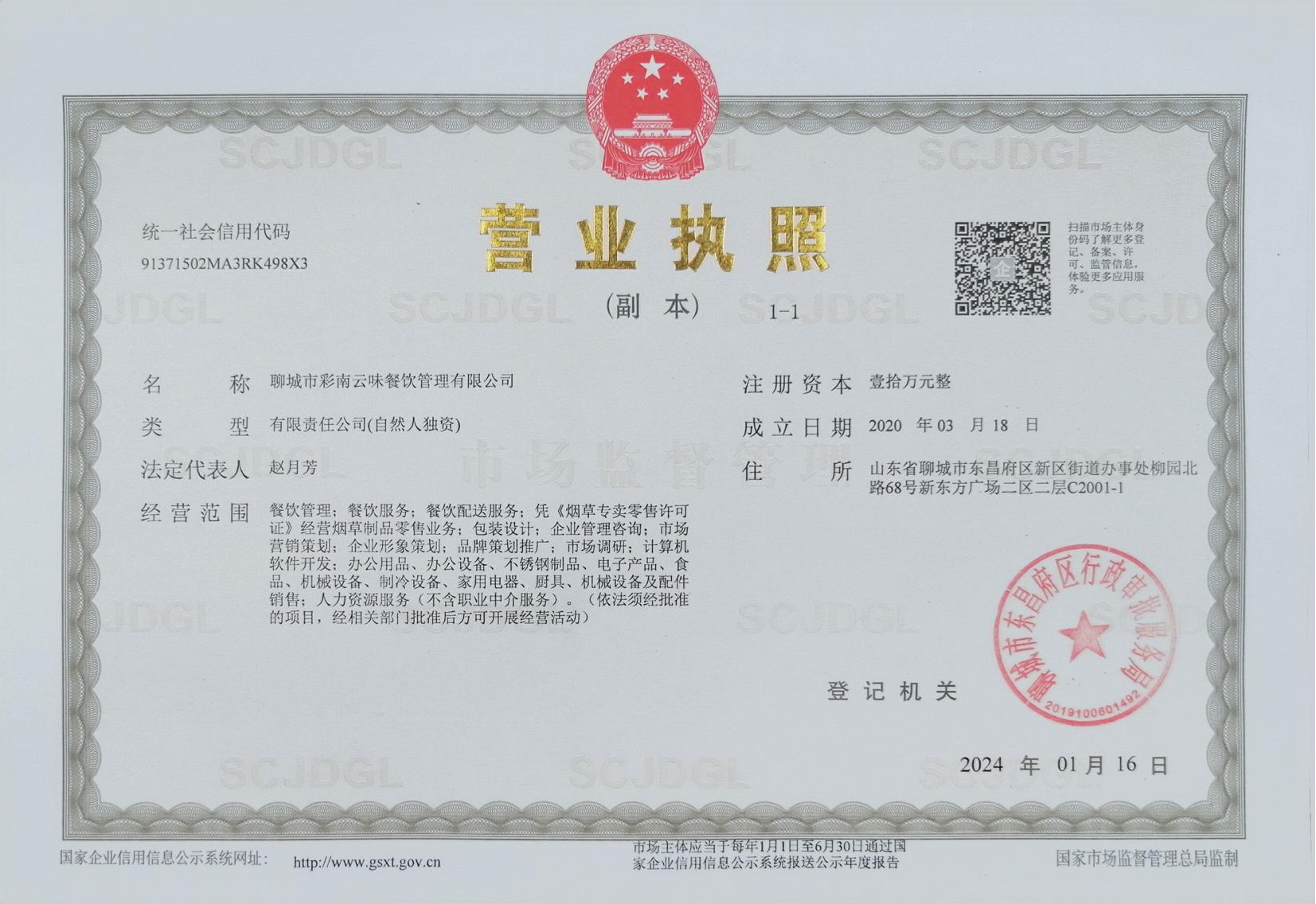 聊城市彩南云味餐饮管理有限公司
